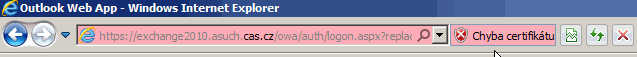 Zkuste spustit Internet Explorer a přihlásit se na adrese https://mail.asuch.cas.cz/ do své pošty. Pokud vidíte něco takového: